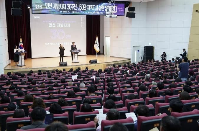 뉴한국방송뉴스통신사 신유철기자 기자 | 광주시는 지난 4일 시청 10층 수어장대홀에서 450여 명의 시민과 전문가가 참석한 가운데, '민선 지방자치 30주년 기념, 50만 자족도시 실현 정책포럼'을 성황리에 개최했다.