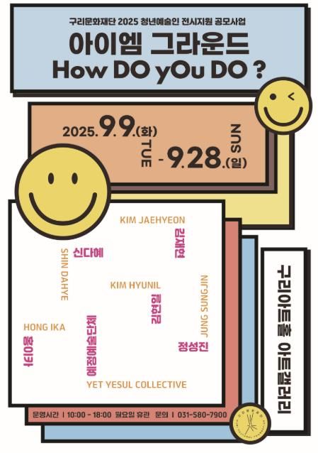 뉴한국방송뉴스통신사 신유철기자 기자 | (재)구리문화재단은 청년 예술인의 성장과 도약을 지원하는 청년 정책 플랫폼 사업의 일환으로, 2025년 청년예술인 전시지원 공모사업 『아이엠 그라운드, How DO yOu DO?』 전시를 오는 9월 9일부터 28일까지 개최한다.