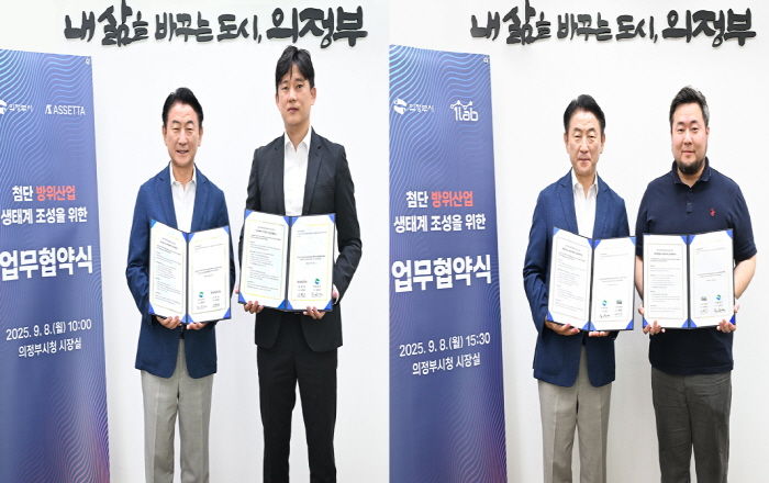 뉴한국방송뉴스통신사 신유철기자 기자 | 의정부시는 9월 8일 드론 산업의 선도기업 ㈜아쎄따, 아이원랩㈜과 ‘첨단 방위산업 생태계 조성’을 위한 업무협약을 체결했다.