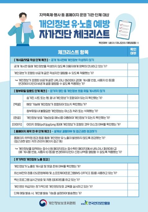 개인정보위는 지방자치단체 및 축제 운영 기관에 각별한 주의를 당부하며, 안전한 홈페이지 운영을 위한 자가점검표를 마련해 배포할 계획이다.