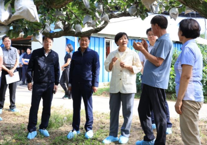 뉴한국방송뉴스통신사 신유철기자 기자 | 송미령 농림축산식품부 장관은 9월 11일 오후, 충남 아산시 둔포면 소재 배 생산농가와 아산원예농협 과수 거점 산지유통센터(APC)를 방문하여 햇배 수확‧출하 등 생육 상황과 수급 상황을 점검하고, 현장 관계자를 격려했다.
