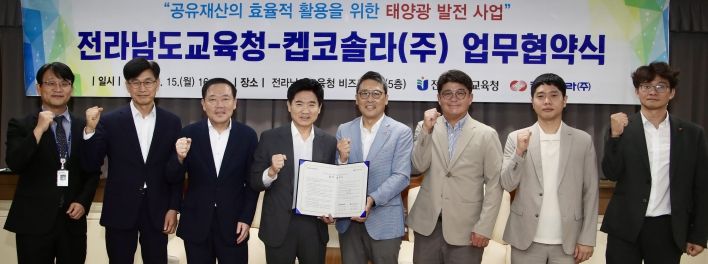 뉴한국방송뉴스통신사 김성의 기자 | 전라남도교육청이 9월 15일 오후 청사 5층 비즈니스실에서 켑코솔라㈜와 ‘공유재산 태양광 발전사업 협약’을 체결했다.