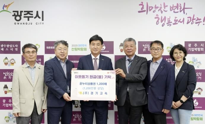 지난 15일 ㈜경기고속 허덕행 상무이사는 광주시청을 방문해 온누리상품권 1천200매(1천200만 원 상당)를, 사회적협동조합 우리나래 박경희 대표는 성금 300만 원을 각각 전달했다.