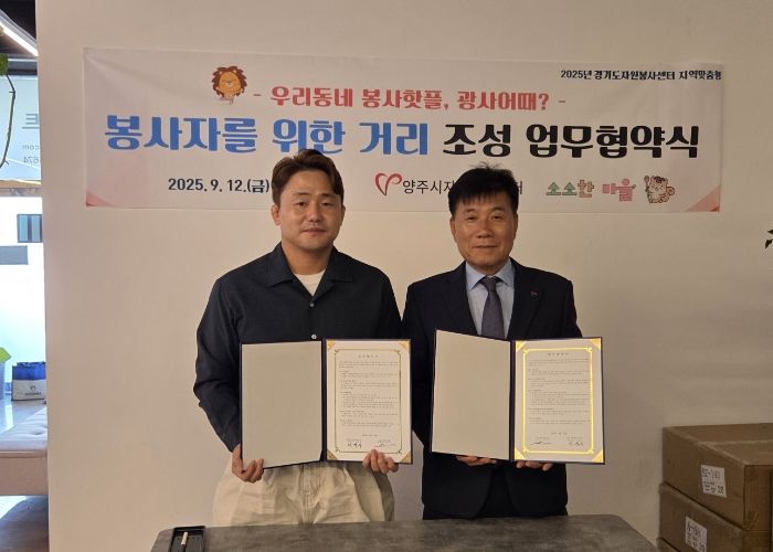 이번 협약은 “우리동네 봉사핫플, 광사어때?” 사업의 일환으로 지역 활성화를 위해 소소한마을상인회(회장 양수근) 16개 업체가 우수봉사자 할인가맹점에 등록하며 봉사자의 거리 조성에 동참했다. 협약에 따라 양주시자원봉사센터는 가맹점 운영 및 혜택 안내, 참여 점포 홍보를 담당하며, 소소한마을상인회는 할인가맹점을 신청한 업체가 자원봉사자에게 할인 혜택을 제공할 수 있도록 지원하고 참여 점포를 체계적으로 관리하게 된다.