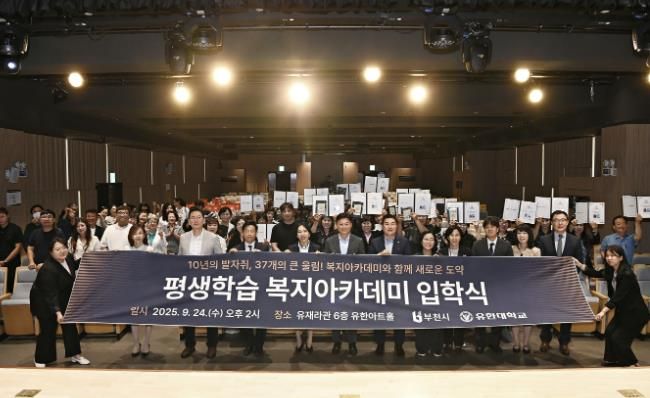 뉴한국방송뉴스통신사 신유철기자 기자 | 부천시는 지난 24일 유한대학교에서 ‘부천시·유한대학교 복지아카데미’ 입학식과 업무협약식을 열었다. 이번 행사는 조용익 부천시장과 장은영 유한대학교 총장을 비롯해 37개 동 지역사회보장협의체 위원장 등 150여 명이 참석한 가운데 진행됐다.