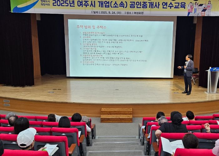 뉴한국방송뉴스통신사 신유철기자 기자 | 여주시는 지난 24일 여성회관에서 관내·외 개업(소속)공인중개사 60여 명을 대상으로 ‘2025년 개업(소속)공인중개사 연수 교육’을 실시했다.
