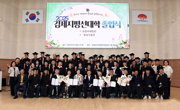 뉴한국방송뉴스통신사 김성의 기자 | 김제시는 지난 25일 농업인교육문화지원센터에서 '2025학년도 김제시지평선대학 졸업식'을 80여명이 참여한 가운데 개최했다고 밝혔다