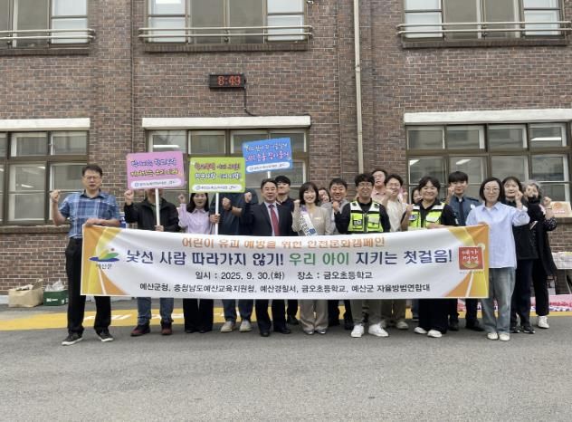 뉴한국방송뉴스통신사 신태공 기자 | 예산군은 최근 전국에서 발생하고 있는 초등학생 대상 유괴 사건을 예방하고 학생과 학부모의 불안을 해소하기 위해 지난달 30일 금오초등학교 일원에서 어린이 유괴 예방 안전문화 캠페인을 실시했다고 밝혔다.