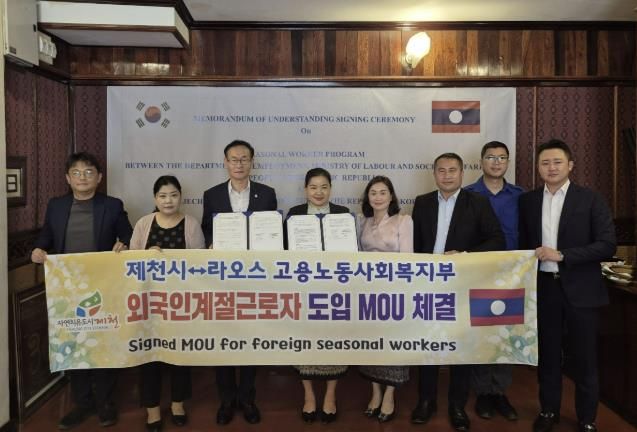 뉴한국방송뉴스통신사 권영분기자 기자 | 제천시는 지난 9월 30일 라오스 노동사회복지부와 외국인 계절근로자 도입을 위한 신규 업무협약(MOU) 을 체결했다. 이번 협약은 농번기 원활한 인력 공급을 위해 추진된 것으로, 특히 농촌 인력 공급 국가를 다변화해 불확실성을 최소화하는 데 목적이 있다.