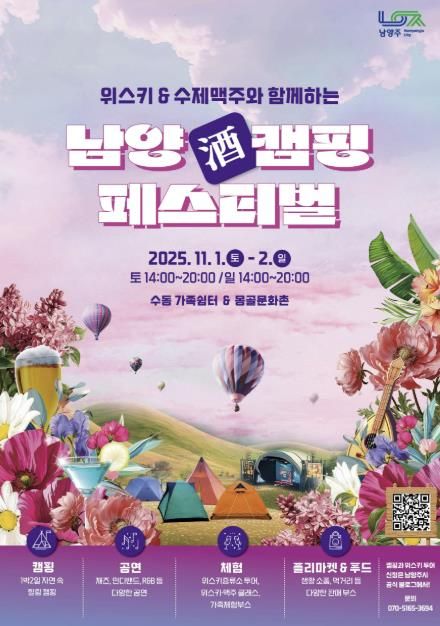 시 관계자는 “남양주의 자연 속에서 캠핑과 공연, 먹거리, 지역 술까지 다양하게 즐길 수 있는 가을 축제를 마련했다”며 “특히 지역에서 만든 술을 직접 체험해볼 수 있는 이번 행사가 시민들에게 색다른 즐거움이 되길 바란다”고 말했다