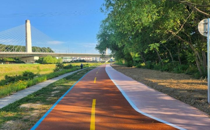 이에 광산구는 도로 폭을 3.9m~5m로 대폭 넓혀 자전거가 달리는 길과 산책길을 분리하고, 자전거도로를 정비했다.