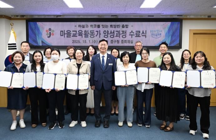 뉴한국방송뉴스통신사 신태공 기자 | 대전 중구는 1일 중구청 중회의실에서 행복이음교육지구 사업으로 추진한 ‘2025년 중구 마을교육활동가 양성과정’을 마무리하고 수료식을 개최했다고 밝혔다.