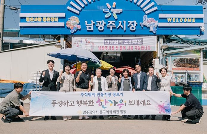 뉴한국방송뉴스통신사 김성의 기자 | 광주광역시 동구의회는 10월 1일 추석을 앞두고 지역 경제 활성화를 위해 대인시장, 남광주시장, 산수시장에서 동구랑페이를 활용해 ‘전통시장 장보기 행사’를 진행했다. 이번 행사는 고물가와 소비 위축으로 어려움을 겪는 전통시장의 활력 회복을 돕고, 현장 중심의 소통을 강화하기 위해 마련됐다.