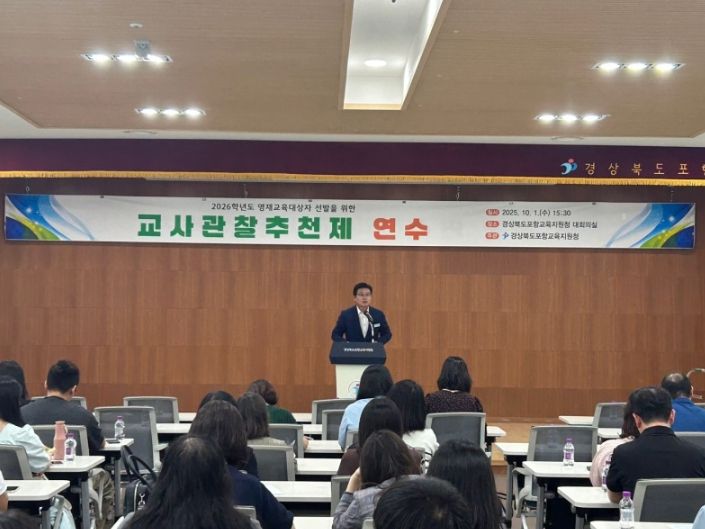뉴한국방송뉴스통신사 신유철기자 기자 | 포항교육지원청은 10월 1일 포항교육지원청 대회의실에서 초ㆍ중등 영재교육업무 담당 교사 100여명을 대상으로 '2026학년도 영재교육대상자 선발을 위한 교사관찰추천제 연수'를 실시했다.