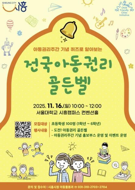 뉴한국방송뉴스통신사 신유철기자 기자 | 시흥시는 오는 11월 16일 오전 10시, 서울대학교 시흥캠퍼스 컨벤션홀에서 열리는 ‘퀴즈로 알아보는 전국 아동권리 골든벨’에 참가할 초등학생을 10월 31일까지 모집한다.