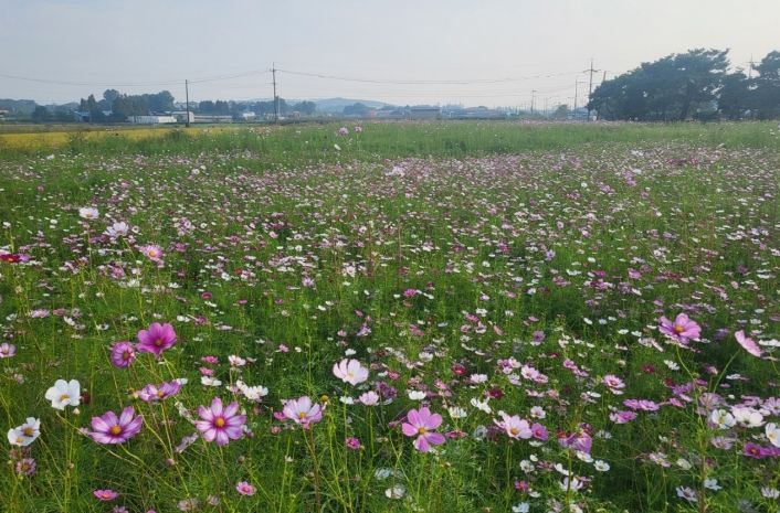 천안시는 긴 추석 명절 연휴를 앞두고 찾고 싶은 지역 명소 조성을 위해 봉선 홍경사지 일대 8,170㎡에 코스모스 꽃밭을 조성했다고 2일 밝혔다.