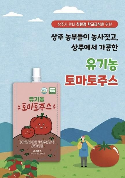 이번에 개발된 토마토즙은 10~25년 경력의 유기농 농가들이 재배한 고품질 토마토(1~2화방 상품성 높은 원물)를 원료로 사용하여, 100ml용량의 스파우트파우치 용기로 된 제품으로 만들었으며, 상주친환경농업연합회가 직접 수매·가공하여 품질을 높였다.