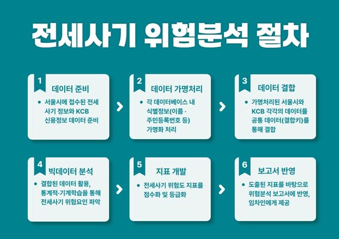 신용점수, 연체이력, 세금체납, 다주택 보유 여부, 주소 이동 등 지표가 반영됐으며, 머신러닝 분석을 통해 고위험 임대인을 사전에 식별하여 예비 임차인에게 ‘위험도 보고서’ 형태로 올해 내 대시민 서비스를 제공할 예정이다. 이러한 데이터 활용 모델은 서울시의 규제철폐 123호 ‘미개방 공공데이터 개방 확대(가명정보 민간 제공)’의 대표적인 실행 사례이다.