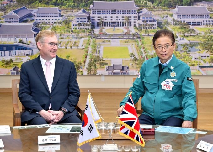 뉴한국방송뉴스통신사 신유철기자 기자 | 이철우 경상북도지사는 3일 도청을 방문한 콜린 크룩스(Colin Crooks) 주한 영국대사 내외와 만나, 경주 APEC 정상회의의 성공적 개최 협력 방안과 함께 산업·문화·교육 등 다양한 분야의 교류 확대를 논의했다.