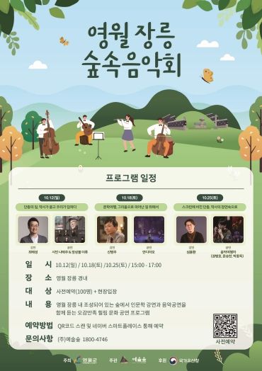 뉴한국방송뉴스통신사 양호선기자 기자 | 영월군은 오는 10월 12일, 18일, 25일 오후 3시부터 5시까지 세계유산 장릉 경내에서 ‘영월 장릉 숲속 음악회’를 개최한다.