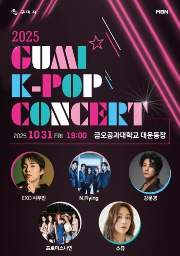 뉴한국방송뉴스통신사 신유철기자 기자 | 구미시는 오는 10월 31일 오후 7시, 국립금오공과대학교 대운동장에서 '2025 구미 K-POP 콘서트'를 개최한다. 이번 공연은 전 세대가 함께 즐길 수 있는 야외 콘서트로 마련됐다. 아이돌·발라드·밴드·트로트까지 아우르는 폭넓은 장르의 최정상급 아티스트들이 출연해 가을밤 구미를 화려하게 수놓는다.