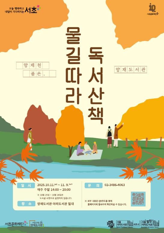 한편, 구는 반포대로 일대 ‘서초책있는거리’를 중심으로 지역 곳곳에 자리한 구립도서관들과 함께 문화와 예술, 독서가 어우러진 K-독서문화를 선도하고 있다. 이와 함께 매년 봄, 가을 열리는 ‘양재천 품은 양재도서관’은 자연속에서 독서와 예술을 즐길 수 있는 특별한 야외도서관으로 주민들의 높은 호응을 얻고 있다.