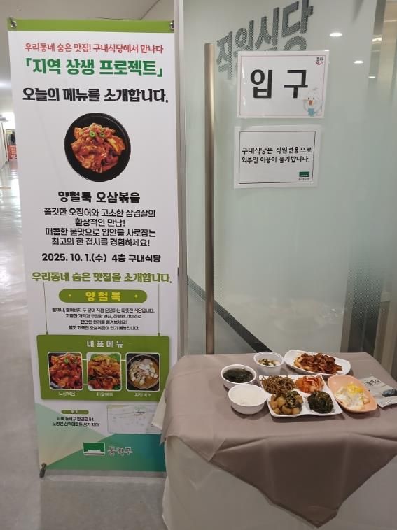 이번 프로젝트는 알려지지 않은 관내 식당의 대표 음식을 구청 구내식당에서 직원들이 직접 맛보고 입소문을 내도록 하는 사업으로, 소상공인과의 ‘상생’과 지역 상권 활성화를 위해 기획됐다.