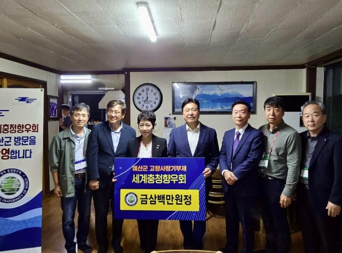 세계충청향우회는 세계 곳곳에서 충청인의 저력을 드높이면서 활발히 활동하는 단체로 이번 기부는 정기적인 고향 방문 행사의 일환으로 추진됐으며, 회원들은 고향 발전에 힘을 보태고자 뜻을 모아 기탁을 추진했다.