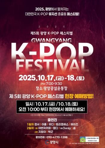 이현주 광양시 관광과장은 “기존의 탄탄한 최정상급 라인업에 신예 아티스트가 합류하면서 라인업이 더욱 풍성해졌다”며 “강렬한 퍼포먼스와 비주얼, 독창적인 음악 스타일로 특별한 감동을 선사할 제5회 광양 K-POP 페스티벌에 많은 관심과 성원을 바란다”고 말했다.
