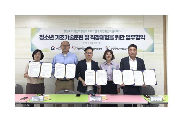 뉴한국방송뉴스통신사 신유철기자 기자 | 포항시청소년재단 포항시학교밖청소년지원센터는 최근 학교 밖 청소년의 기초기술훈련과 직장체험 기회 확대를 위해 지역 사업장 2곳과 업무협약을 체결했다고 밝혔다.