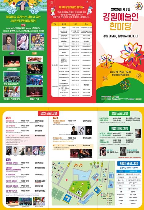 뉴한국방송뉴스통신사 신유철기자 기자 | 강원예술인과 도민의 화합·소통·공감을 위한 '2025 제3회 강원예술인 한마당' 행사가 오는 10월 17일부터 19일까지 3일간 횡성문화체육공원 일원에서 열린다.