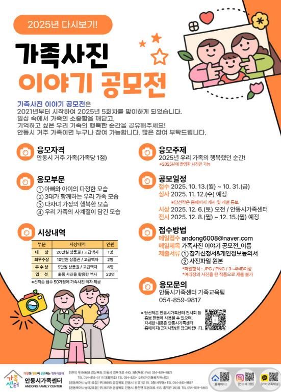 뉴한국방송뉴스통신사 신유철기자 기자 | 안동시는 가족의 소중한 추억을 되새기기 위한 『2025년 다시보기! 가족사진 이야기 공모전』을 개최한다.