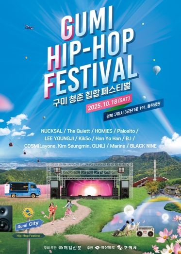 뉴한국방송뉴스통신사 신유철기자 기자 | 구미시는 오는 10월 18일 동락공원에서 청춘들의 열정과 힙합 음악이 어우러지는 '2025 구미청춘힙합페스티벌'을 개최한다. 이번 공연은 오후 3시 30분부터 밤 10시까지 진행되며, 전석 무료(스탠딩존)로 선착순 입장할 수 있다.