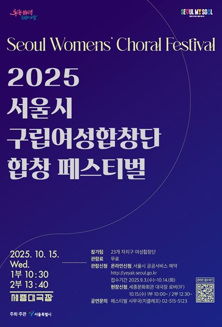 뉴한국방송뉴스통신사 신유철기자 기자 | 서울시는 깊어가는 가을을 맞아 오는 10월 15일 오전 10시 30분부터 세종문화회관 대극장에서 '2025 서울시 구립여성합창단 합창 페스티벌'을 개최한다. 이번 페스티벌에는 서울시 23개 자치구 여성합창단 700여 명이 무대에 올라, 아름다운 화음으로 시민들에게 잊지 못할 감동과 따뜻한 추억을 선사할 예정이다.