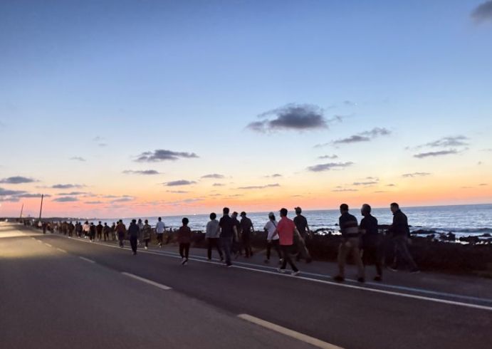 뉴한국방송뉴스통신사 신유철기자 기자 | 서귀포시는 일상생활 속 1일 7천 보 걷기 활성화를 위하여 11일 새벽 5시 신산리 마을주민들과 함께하는 '힐링 UP! 혼디모영 걸을락(樂)' 신산마을걷기를 운영했다.