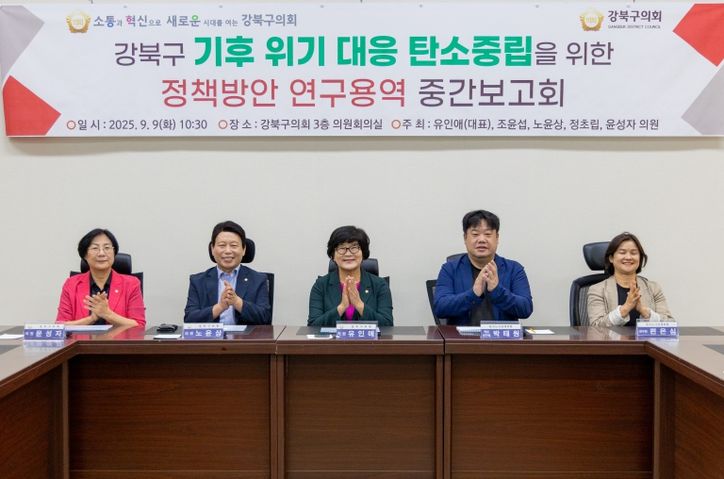 뉴한국방송뉴스통신사 신유철기자 기자 | 강북구의회 의원연구단체인 ‘강북구 기후위기 대응 탄소중립을 위한 연구회’ (대표의원 유인애)는 지난 9월 9일 의회 3층 의원회의실에서 중간보고회를 열었다.