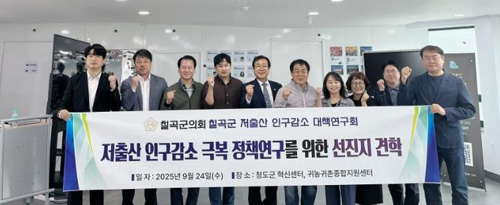 뉴한국방송뉴스통신사 신유철기자 기자 | 칠곡군의회 의원연구단체인 “칠곡군 저출산 인구감소 대책연구회”는 9월 24일, 도내에서 생활인구 증가율이 가장 높은 청도군을 방문하여 청년 및 귀농·귀촌 정책을 통한 인구유입 방안에 대하여 벤치마킹을 진행했다.