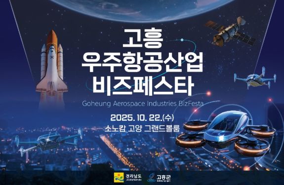 뉴한국방송뉴스통신사 신다은기자 기자 | 고흥군은 대한민국 우주항공산업의 중심지로서 미래 전략산업을 선도하기 위해 오는 10월 22일 경기도 고양시 소노캄 호텔에서 ‘2025 고흥 우주항공산업 비즈 페스타’를 개최한다고 밝혔다.