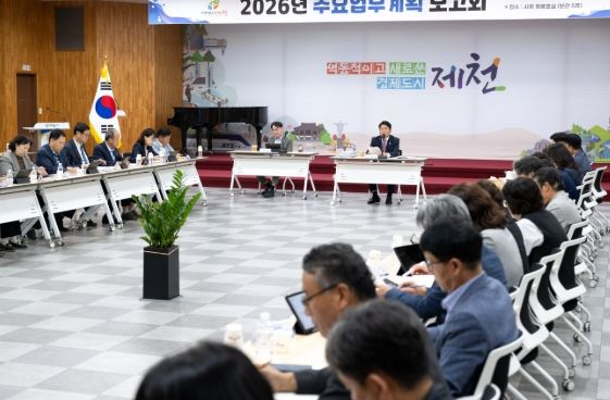 뉴한국방송뉴스통신사 권영분기자 기자 | 제천시는 지난 13일 시청 청풍호실에서 김창규 시장 주재로 국장 및 직속기관장, 부서장이 참석한 가운데 2026년 주요업무계획 보고회를 개최했다.