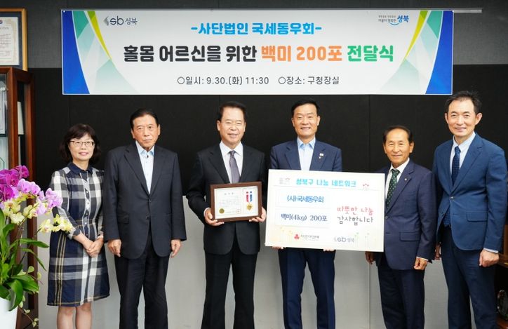 뉴한국방송뉴스통신사 신유철기자 기자 | 서울 성북구가 지난 9월 30일 백미 800㎏(4㎏들이 200포)을 기부한 (사)국세동우회 자원봉사단(단장 정환만)에게 감사장을 수여하며 나눔의 자리를 가졌다.