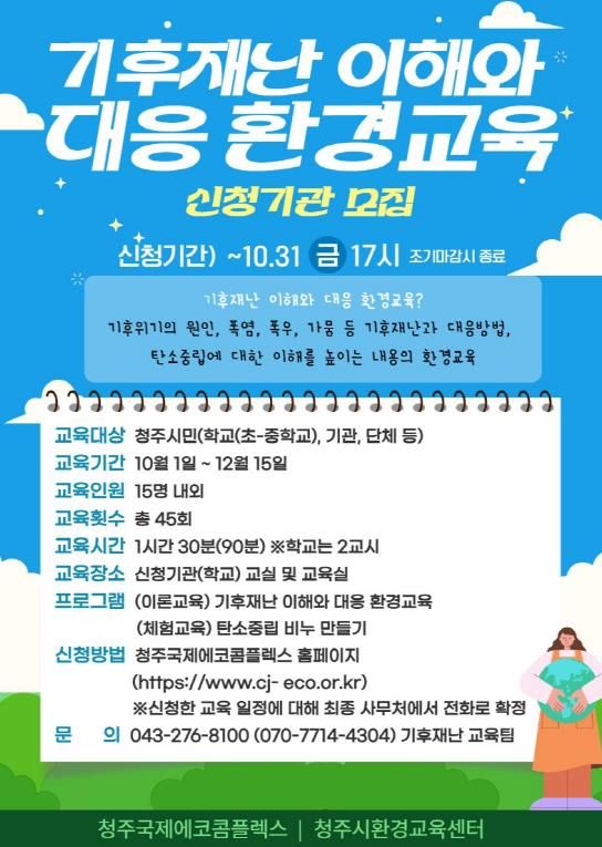 이번 교육은 충청북도에서 실시한 ‘2025년 기후재난 대응 교육 강화 범도민 환경교육 공모사업’에 청주시 환경교육센터가 선정되면서 마련됐다.