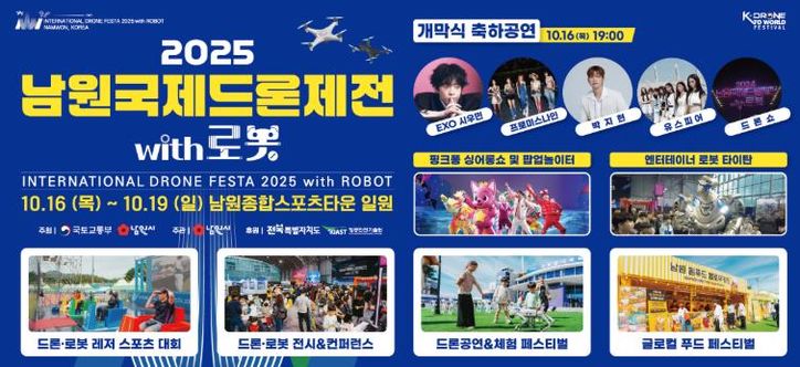 최경식 남원시장은 “남원국제드론제전은 춘향제와 함께 남원을 대표하는 가을 축제로 성장했다”며 “드론과 로봇이라는 미래 기술을 시민이 직접 체험하고 즐길 수 있는 이번 행사를 통해 남원이 ‘전통과 미래가 공존하는 도시’로 도약할 것”이라고 말했다.