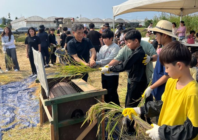 학생들은 벼 베기와 전통 호롱이 탈곡 체험을 통해 협력의 가치와 마을 공동체의 역할을 배우며 농업문화 속에 담긴 생명의 소중함과 지속가능한 삶의 의미를 되새겼다.