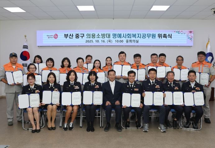 최진봉 중구청장은 “의용소방대원분들이 고립과 절망속에서 어려움을 겪는 이웃의 삶을 발견하고, 연결하는 소중한 역할을 해주시라고 믿는다”며, “명예사회복지공무원으로 활동하시는 여러분들이 자긍심을 가지고 안전하게 활동하실 수 있도록 지원을 아끼지 않겠다.”고 전했다.