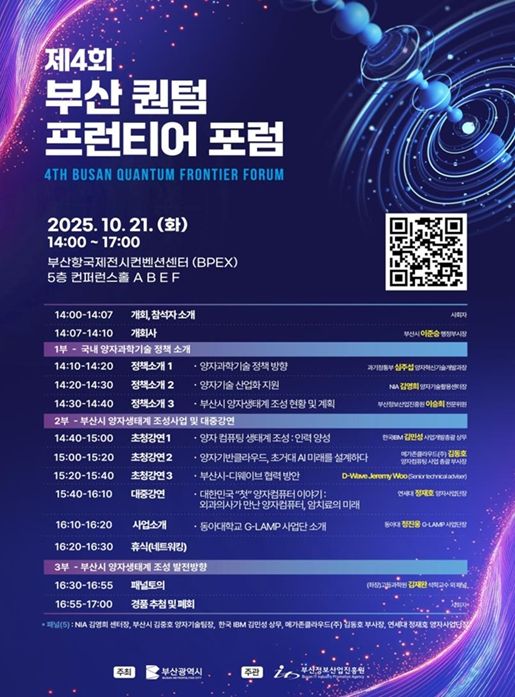 뉴한국방송뉴스통신사 신유철기자 기자 | 부산시는 오는 10월 21일 오후 2시 부산항국제전시컨벤션센터 컨퍼런스홀에서 '제4회 부산시 퀀텀 프런티어 포럼'을 개최한다고 밝혔다.