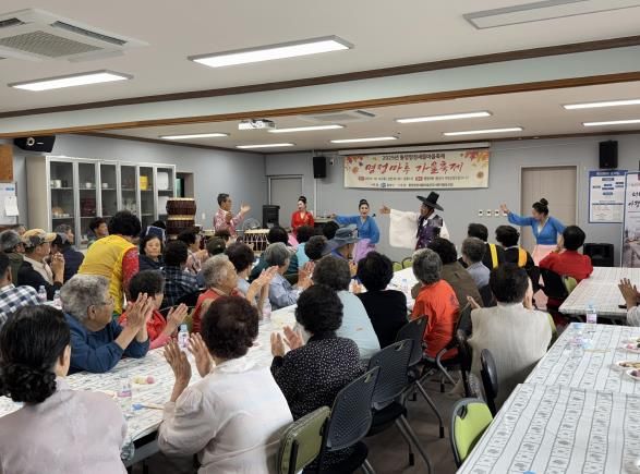 이날 행사에는 명정동 관내 100여명의 어르신들이 참석해 사물놀이, 거문고, 고고장구, 하모니카 등 다양한 공연을 맛있는 식사와 함께 즐겼다.
