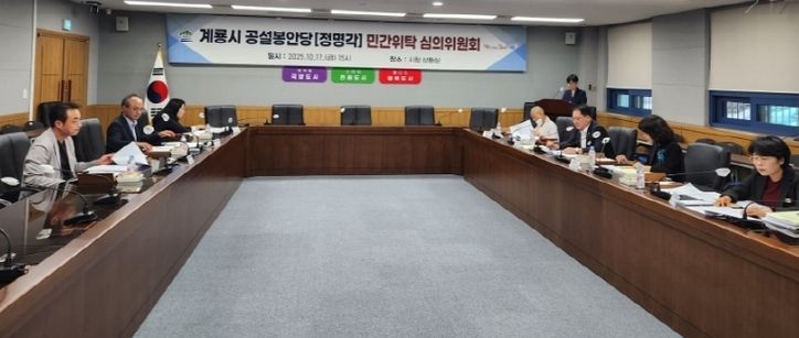 뉴한국방송뉴스통신사 신태공 기자 | 계룡시는 17일 민간위탁심의위원회를 열고 오는 12월 종료 예정인 공설봉안당 ‘정명각’의 민간위탁 연장 계약 관련 사항을 논의했다.