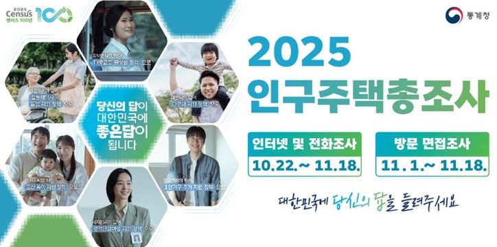 10월 22일부터 31일까지는 인터넷(PC‧모바일)‧전화조사가 진행되며, 미응답 가구를 대상으로는 11월 1일부터 18일까지 조사원이 직접 방문해 조사를 실시할 예정이다.