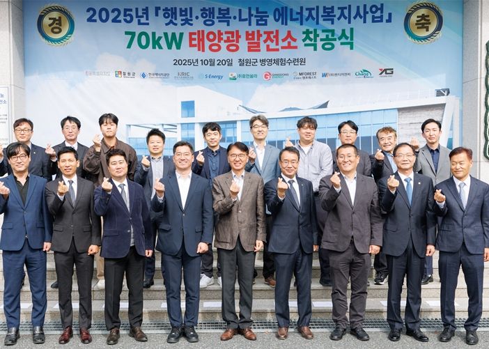 뉴한국방송뉴스통신사 양호선기자 기자 | 10월 20일 오전 11시, 철원군 갈말읍에 위치한 철원군병영체험수련원에서 '햇빛·행복·나눔 에너지복지사업 70kW 태양광 발전소 착공식'이 열렸다. 이 행사에는 강원특별자치도 산업국장, 철원군수, 한국에너지공단 강원지역본부장, 한국기후변화연구원장, 그리고 강동에너지대표이사 등 5개 신재생에너지 관련 민간기업 대표가 참석했다.