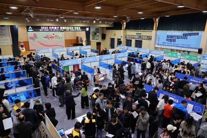 뉴한국방송뉴스통신사 신유철기자 기자 | 인천 미추홀구는 22일 구청 대회의실에서 장애인의 안정적 취업 지원과 사회참여 확대를 위한 ‘2025 장애인 일자리 박람회’를 성황리에 개최했다.